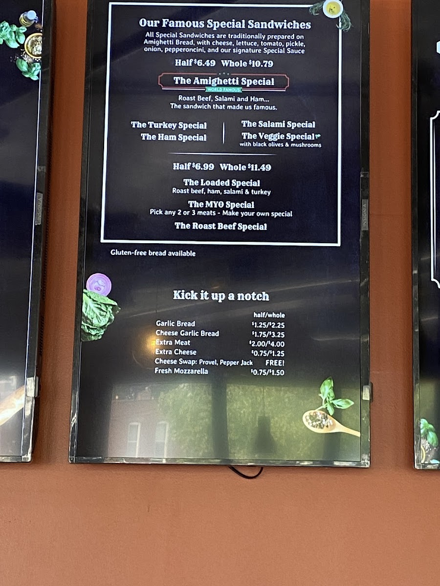 The atmosphere at Amighetti's matches the menu’s straightforward charm—comfortable and approachable, inviting guests to enjoy their food at their own pace, whether dining in or taking their meal to go. This is a place where the food feels like a quiet celebration of Italian-American tradition, making it easy to appreciate the small moments of a satisfying meal.