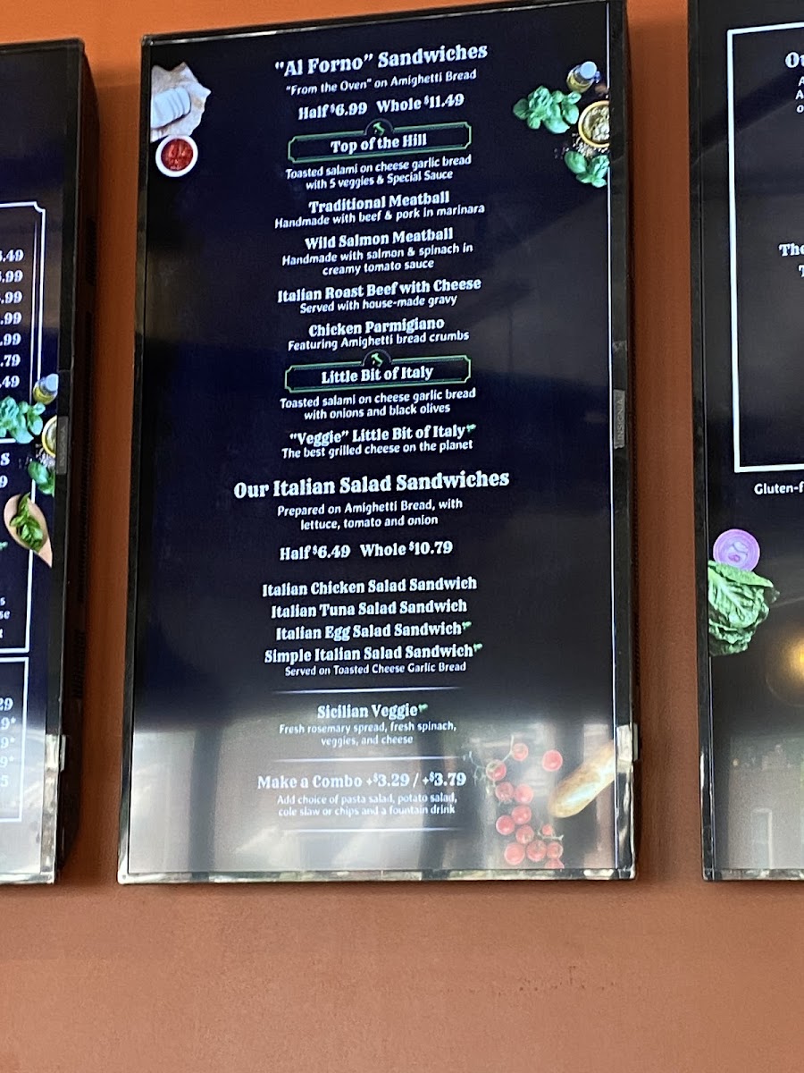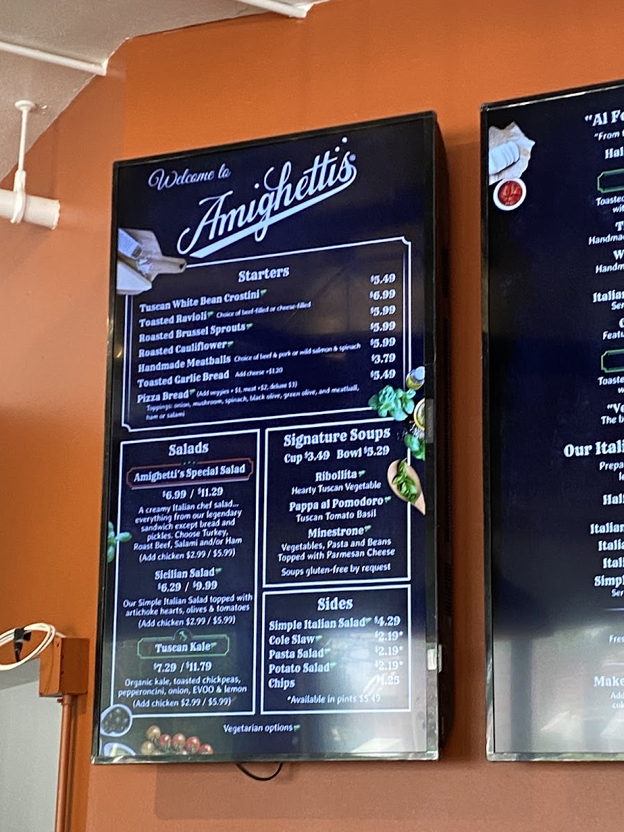 Amighetti's offers a welcoming menu rooted in classic Italian fare, perfect for casual lunches, relaxed dinners, or any time you're craving comforting, familiar flavors. The menu is a blend of deli-style sandwiches, hearty soups, fresh salads, and well-loved pasta dishes, all served in a friendly and unpretentious setting.