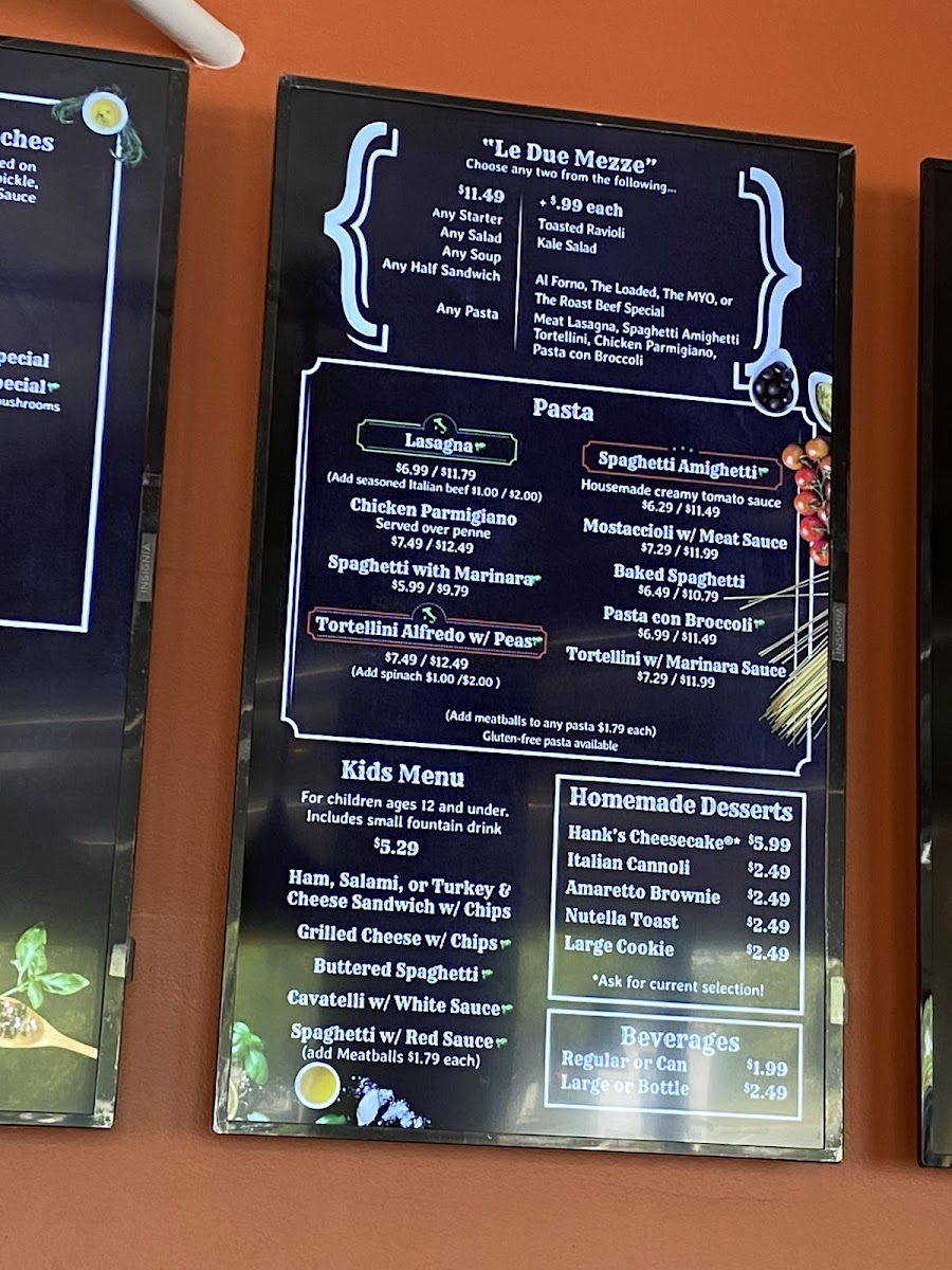 Sweet finishes include a variety of cannoli flavors and treats like Hank’s Cheesecake slices, offering a touch of indulgence without overwhelming the overall simplicity of the menu. Beverage options range from classic sodas to sparkling Pellegrino, complementing the familiar yet thoughtfully prepared dishes.